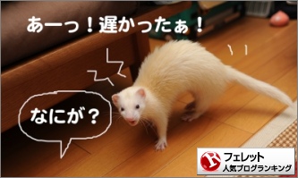 何にでおくれたのかな? あず茶の基地のジャーキーを食べ損ねたとか?