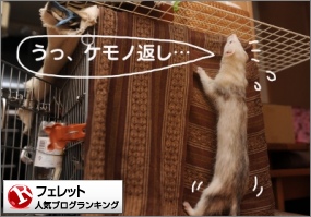 ペット(フェレット)ランキングへケージ登山に思わぬ障害が!あわてるちまさんをポチッとね。