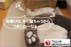 ■むぅさん 日に日にあずきさんは寝ている時間が長くなっています。ちまきにはまったく興味がありません。ちまきさっM、退屈しているのがよくわかります。