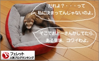 今日の「なっこ家です」(ランキング1位)のブログは、けっこう中身のある内容ですよ。さぁーすが、なっこさん!イタチ飼いさんたちのほとんどが通るお悩みの数々。参考になると思います。ぜひぜひ覗きに行ってちょ。